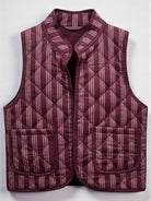 Chaleco de corte recto con diseño acolchado en patrón de rombos y estampado de rayas verticales. Detalle de bolsillos delanteros y ribetes al tono. Ligero y versátil, ideal para llevar sobre camisas o jerséis de punto.