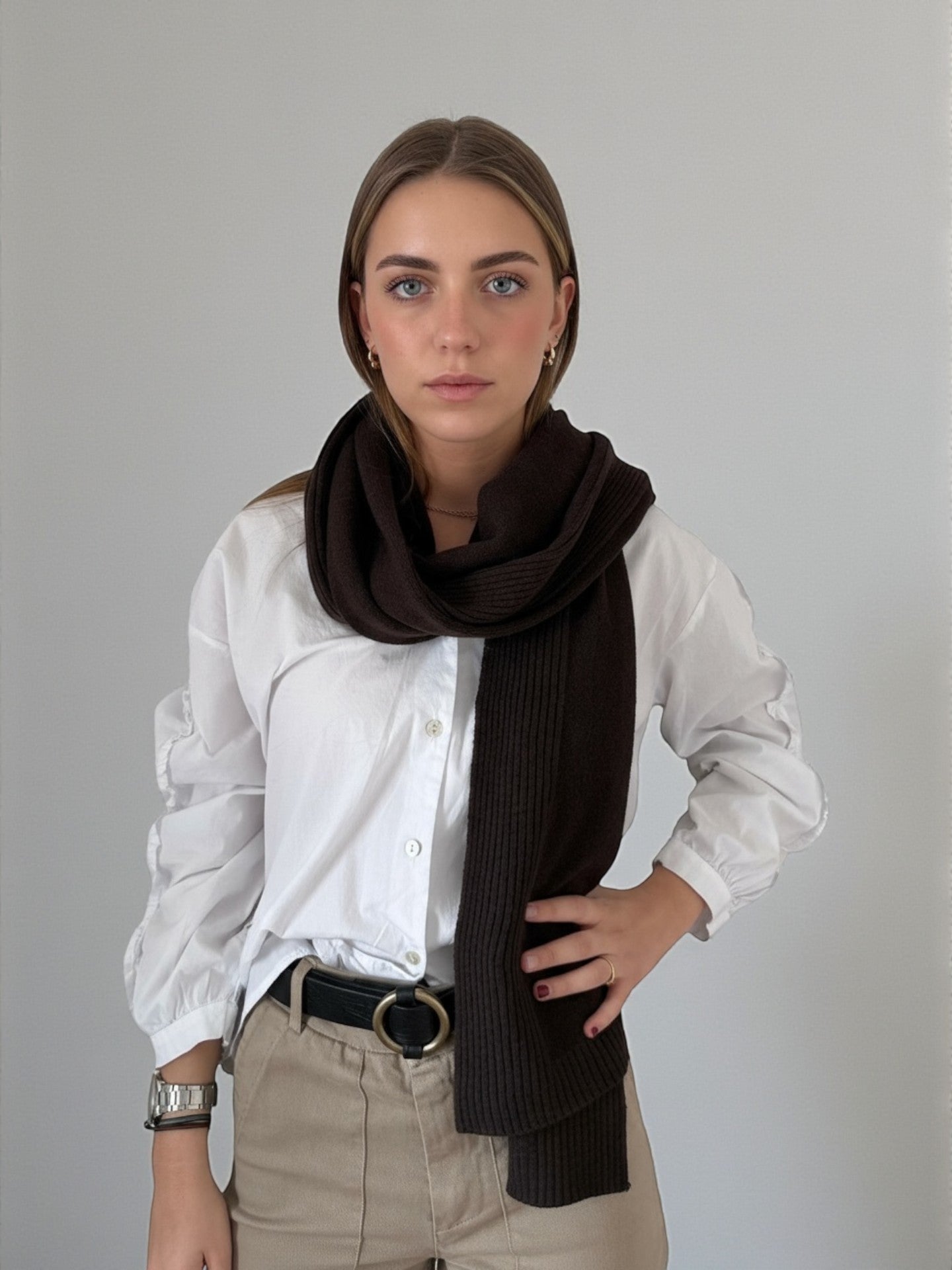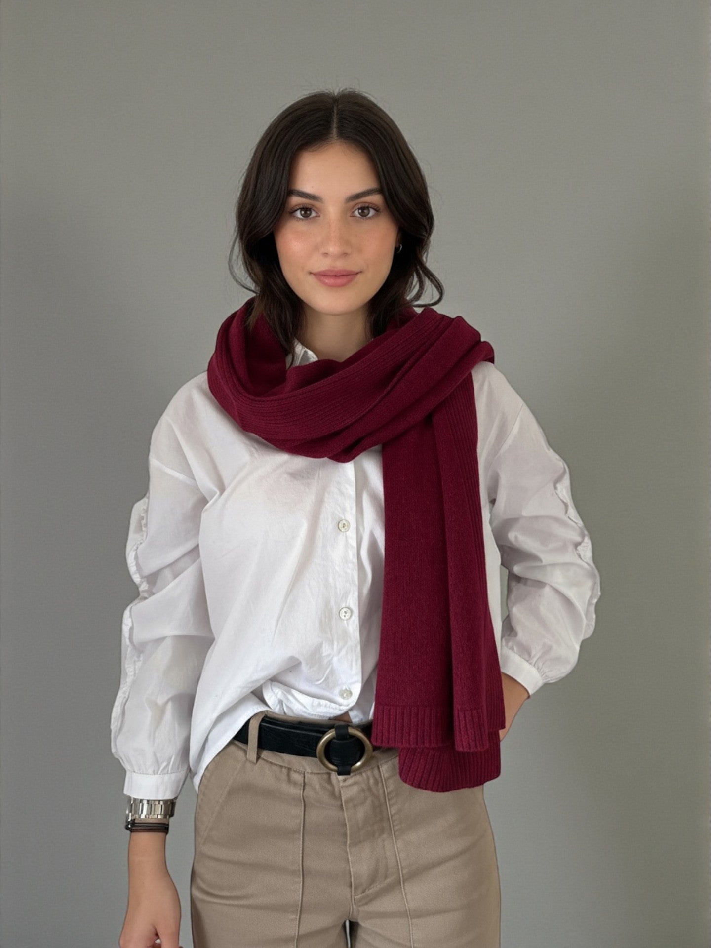 Bufanda de punto cálido y tacto suave, con acabado acanalado en los extremos. Diseño clásico y versátil, perfecta para combinar con cualquier abrigo o chaqueta. Disponible en varios colores elegantes ideales para el invierno.