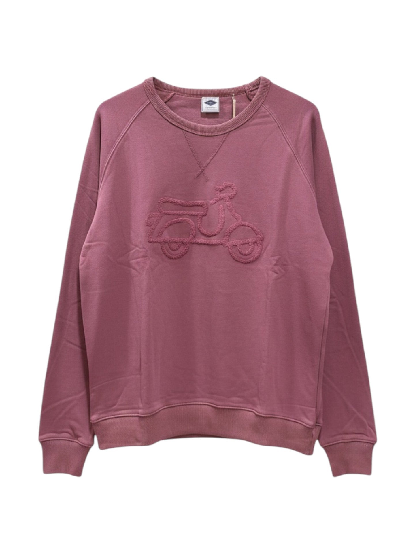 Sudadera de algodón suave con diseño bordado en relieve de moto tipo Vespa. Corte clásico, cuello redondo y acabados elásticos en puños y bajo. Ideal para un look casual y cómodo en cualquier temporada.