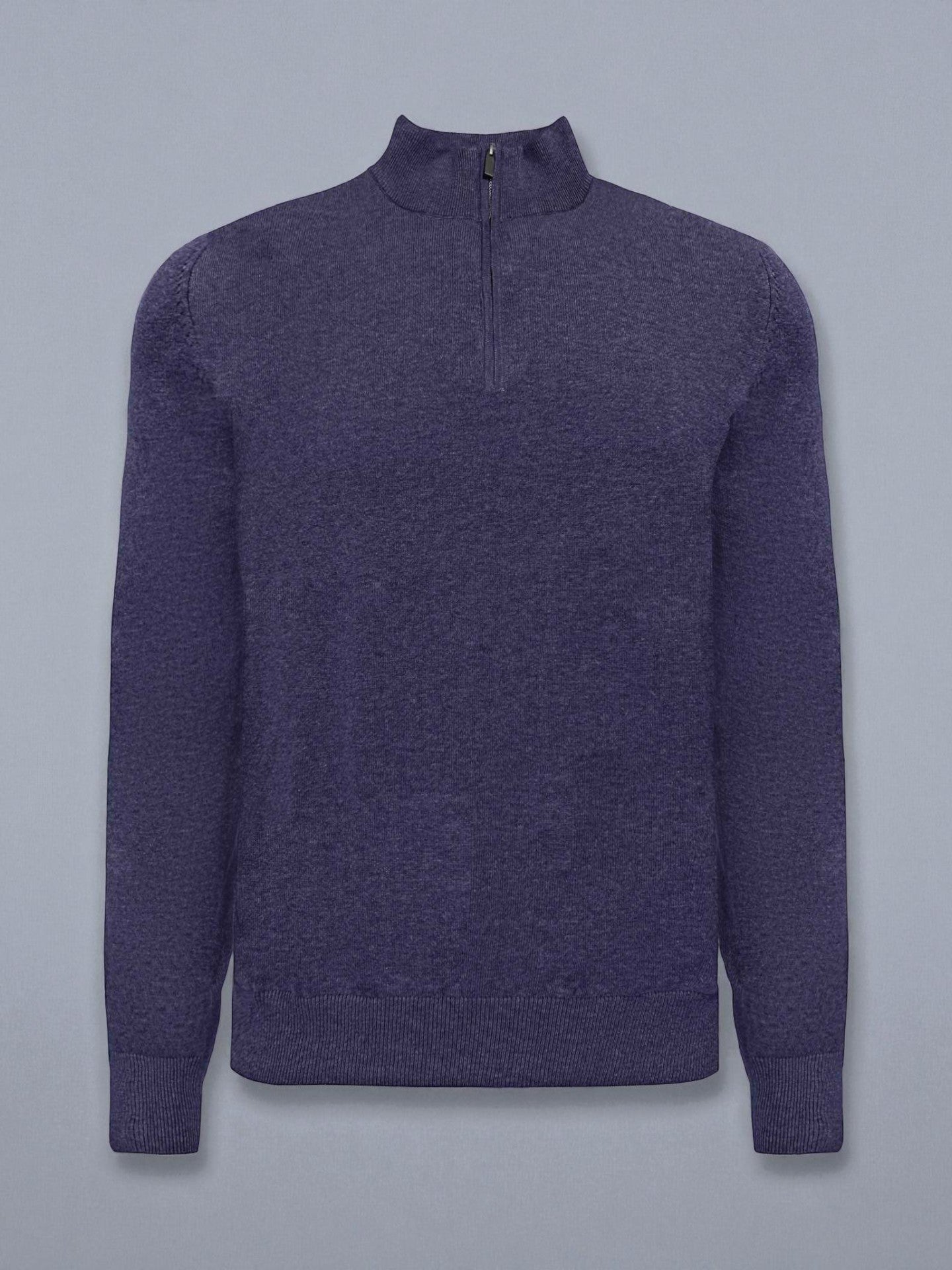 Jersey de hombre en color azul marino con cuello alto y media cremallera. Diseño clásico de punto fino con puños y bajo acanalados para un mejor ajuste. Ideal para looks casuales o de oficina, combinable con camisa o camiseta interior.