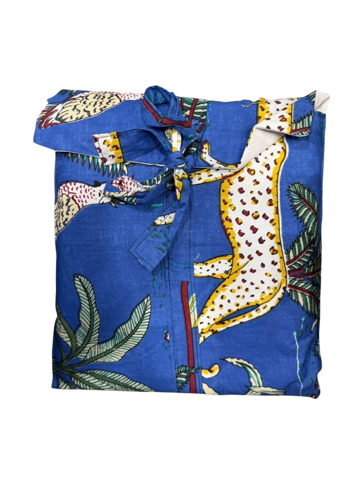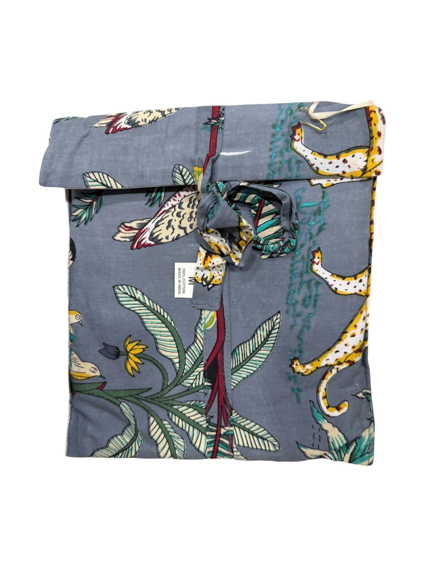 Pijama 100 % algodón con estampado original y pantalón a juego. Suave, cómodo y transpirable, ideal para dormir o estar en casa. Diseño artesanal fabricado en India con estilo boho y acabado de gran calidad.